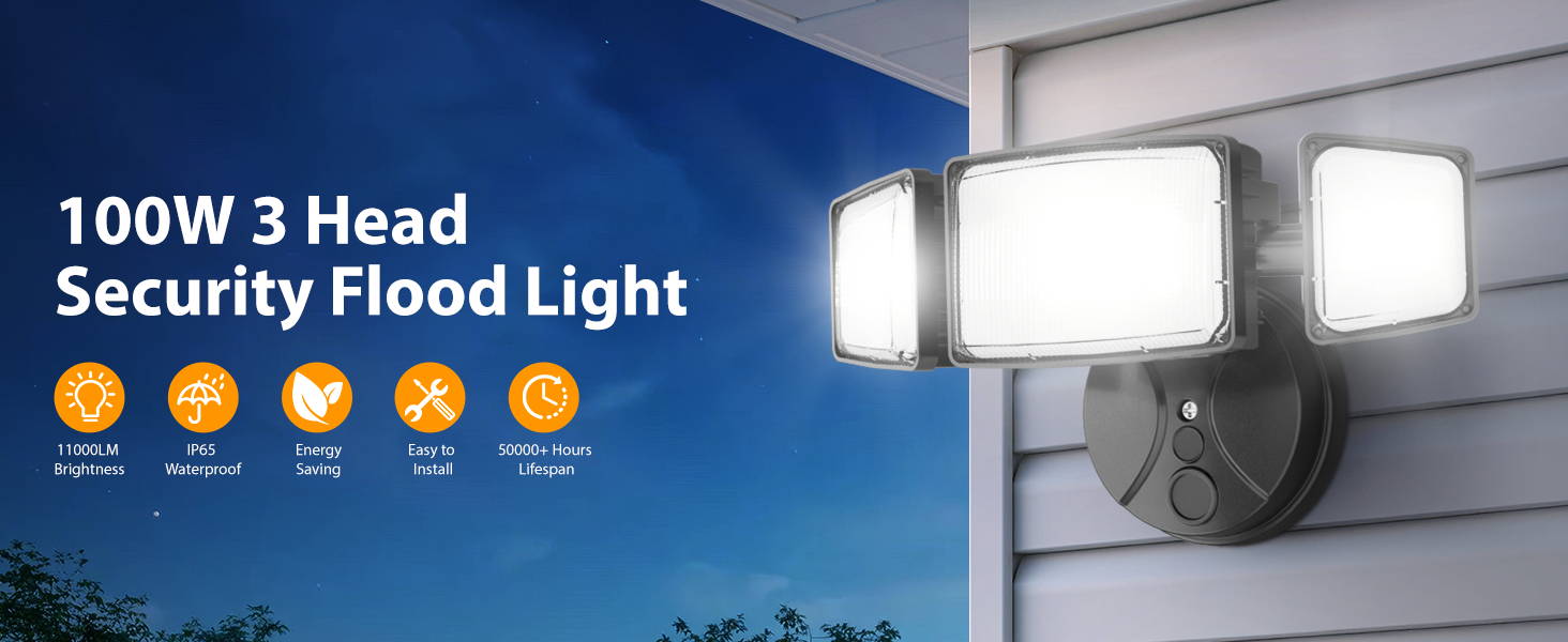 100w outdoor flood light with ultra-bright efficient LEDs can produces up to 11000 lm brightness and 6500 kelvin daylight led lighting, brighter than other 80W outdoor flood light.