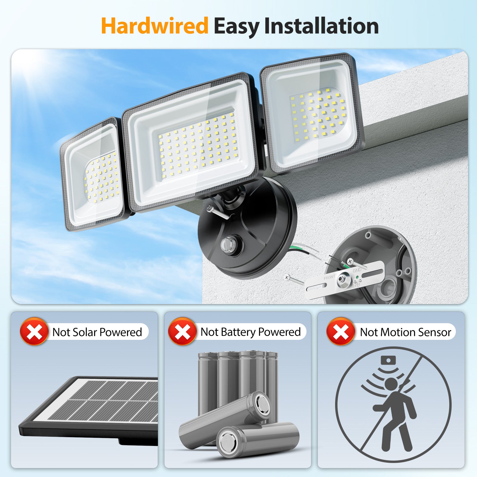 - 130W 13000LM Super Bright Flood Light:Equipped with 154 premium, upgraded LEDs and filter lenses, it delivers exceptional, superior brightness of up to 13000 lumens in 6500K daylight. It features a long lifespan, saves over 89% energy compared to halogen lights, and is perfect for illuminating driveways and backyards.Note: No Motion Sensor. Not Solar Powered.No Plug
