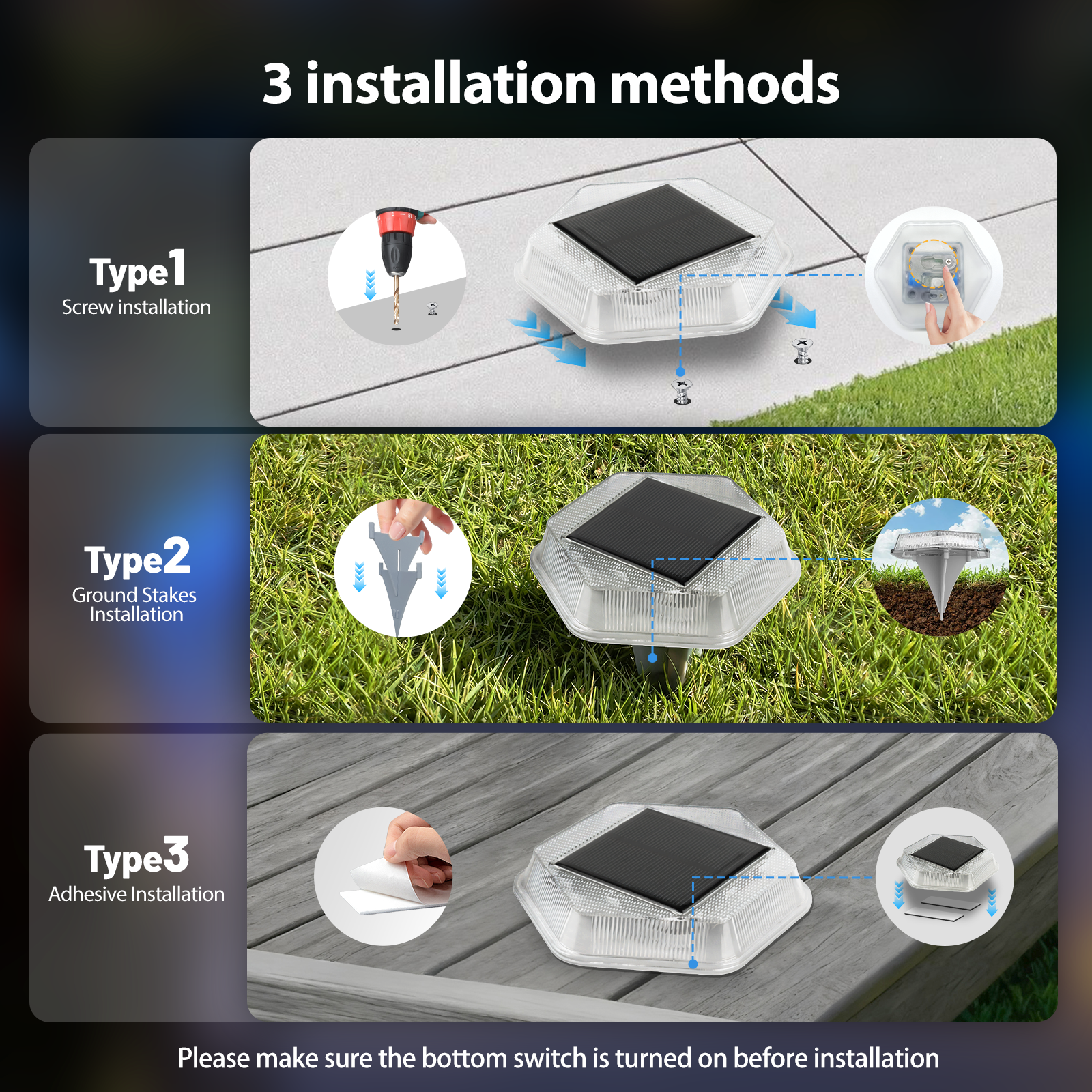 - Long-Lasting 12-Hour Night Illumination: Powered by a high-capacity 500mAh rechargeable battery, your solar deck lights deliver an impressive 12 hours of continuous 100% brightness after a full 8-hour charge, ensuring your driveway or dock remains safe and beautifully lit all night long.